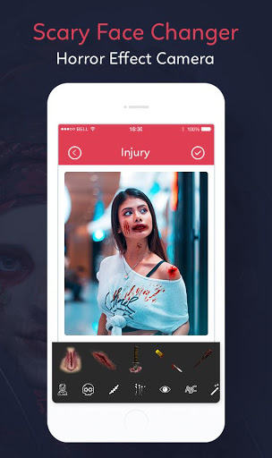 Transform yourself with this Scary Clown Camera app and Scary Face Changer for free. If you are a fan of photo editing on your mobile phone and makeup camera effects, then you will just go crazy over our brand new Scary Effect Camera. Forget about any slow-mo step by step tutorial and get a Scary Photo Editor. Halloween stickers for your selfie will turn you into a scary or a Scary Joker instantly with scary face effects and cool Scary Filters. This lips makeup and eye makeup app will turn you into a terrifying monster girl. Prepare for the scariest holidays of all with our makeup editor for pictures pro. Happy Halloween, little monsters, Scary Effects. Take a selfie and apply cool Scary Faces changer photo editor to your beautiful pictures. You can save or share your virtual makeup photo montages or even use them as great background wallpapers. Why play Scary House Games, when you can turn yourself into one with Clown Photo Editor. Make a few adjustments by rotating, shrinking or enlarging the scary stickers. If you enjoyed Scary Clown Photo Editor you will love this face changer app for girls and boys. Let your kids use the app and keep them occupied for hours. With Scary Photo Booth everything is possible. Get some costume ideas or pick up new lips and eye makeup tricks. Forget about the glam eye makeup guide step by step for fancy girls and enter our horror virtual beauty salon to get Scary Images.
