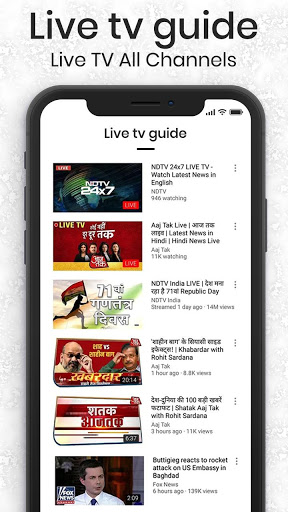 Watch free live tv news streaming in android app and live tv newscast about India news, world news, sports news, entertainment news.