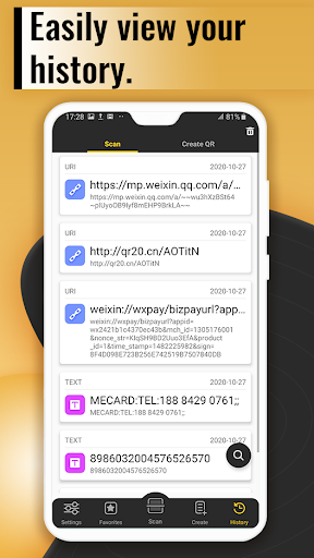 3.Create and generate various types of QR codes, such as contact information, URL, WIFI, clipboard, email, location, application, etc.
