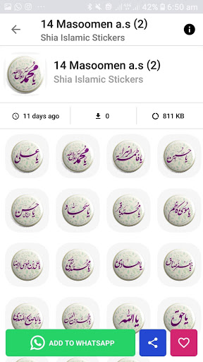 The app contains Birthday, Martyrdom of whattsapp stickers of Fourteen Infallibles (peace be upon him) and other Islamic occasions, Family, Hijab and other topics.