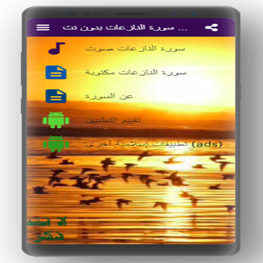 Sura Al-Na'a'at without net is an application that includes one of the walls of the Quran where the application included in its content on many features where you can listen to the voice and read the sura al-Na'ad writtet as you can by the application learn quran without net, so you can now listen to it in the voice of Maher Al-Mu'aqili mp3 as the application is comprehensive on the recitation of the recitation of the recitation and recitation of the voice sura al-Na'adat in order to increase your Islamic culture and the application is easy to use