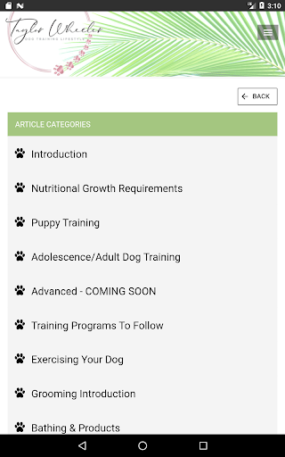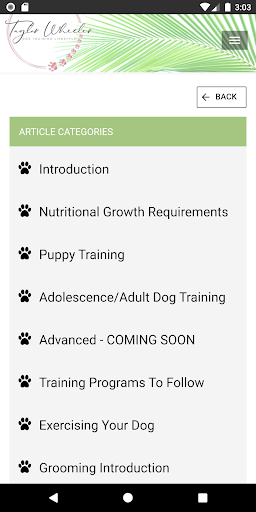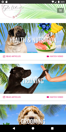 Read articles and receive our step by step programs to get your dog on the fast track to well behaved and mannered! This app is packed with information on Health & Nutrition, Mind Stimulation, Games, Dog Grooming and more. You have found the one stop, information app for all your doggy needs.