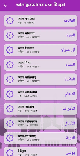 2. 114 surah of holy Quran with Bangla-English pronunciation, subtitle and audio.