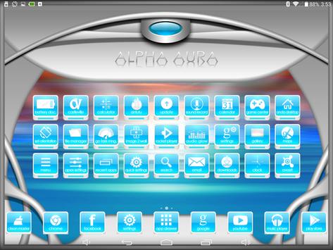 This theme is compatible with most Android hardware. It has 60 icons and a iconback, iconupon, and an iconmask, so your icons will be themed if i have added them or not. It works with Apex Launcher. This theme has a very cool wallpapers as well. I will update this theme frequently so you know. I hope you enjoy the theme Alpha Aura!