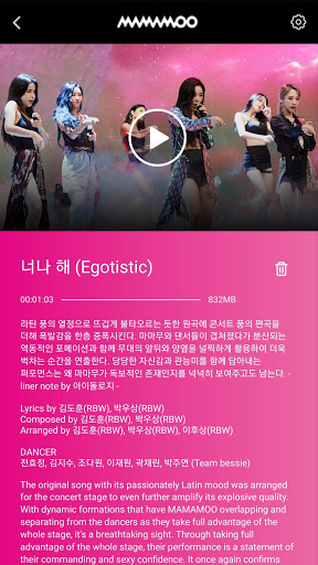 마마무와 SF9 등 K-POP 아티스트의 대표 퍼포먼스가 담겨 있습니다. 각 아티스트의 VP 앨범을 구매 후 다운로드 및 플레이가 가능합니다. 아티스트는 점차로 추가될 예정입니다.