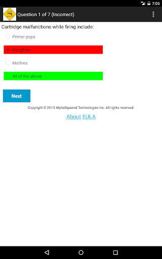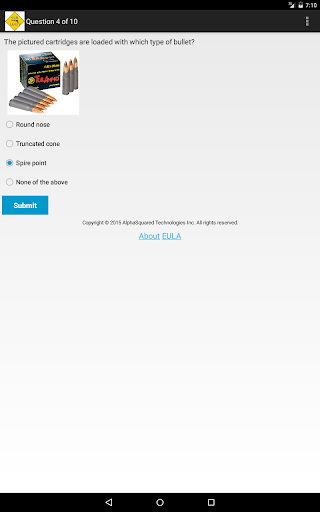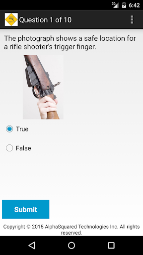 At AlphaSquared Technologies Inc. we strongly believe that everyone must know how to use firearms safely. So, we have created this challenge test application to help all new firearm license applicants and even seasoned firearms users to feel confident at any exam and to be safe while handling firearms on a day-to-day basis, applicable worldwide, not specific to any country. NOTE: this firearm safety test app is not a substitute of a practical gun safety course, but should help you to prepare to it. You will get the hang of basic safety requirements and understand what is expected. And, of course, we hope that you will practice this information even after you pass your certification exams (if any).