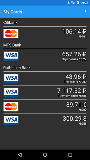 My Cards is a simple application that displays your credit card balances in a comprehensive way.