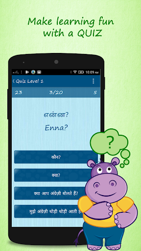 Build knowledge from scratch or refresh your Tamil grammar. The app easily enables you to improve your Tamil vocabulary and pronunciation, remember new words using Tamil Flashcards, learn the alphabet in Tamil or test your Tamil language knowledge with our fun Tamil quiz. Used as an English to Tamil dictionary or an English to Tamil learning app, "Learn Tamil Quickly" has several handy features that helps you with effective language learning. You will soon find out that it is you will be able to speak easy phrases quite quickly
