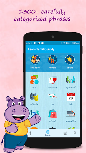 If you are determined to learn a specific category of words, Learn Tamil Quickly will enable you that. It will help you in learning Tamil with translation for most frequently used words and phrases across 33 categories.