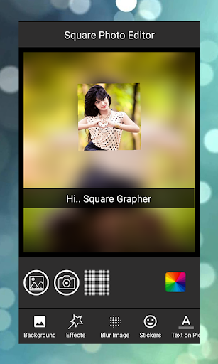 Square Photo Editor lets you add custom background images as borders to make your beautiful pictures even more special and unique. You even can create instasize square pictures using built in No Crop feature if you still prefer the old, but nice Instagram square picture style. With this photo editor any picture will be perfect! Apply hundreds of emojis and make your selfie pictures more expressive! Square Blur Snap Pic Grid Photo Effect is the perfect photo square editor to post full size picture on Instagram. Square Photo Editor is best photo editorfor every age.