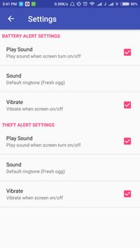 When you plug-in mobile phone for charging at a far away place, at this time Theft Alarm is useful. When some one unplugs your mobile then it sounds/alerts. You will know about un-plug of your device by someone.