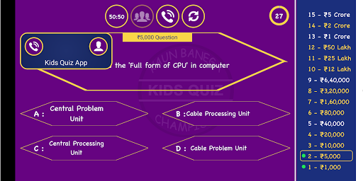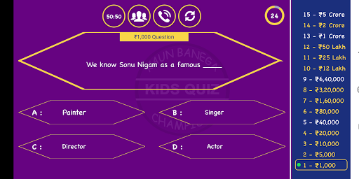 KIDS QUIZ APP (KBC STYLE) MILLIONAIRE QUIZ