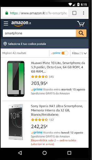 L'app è solo un filtro per la visualizzazione dei prodotti, non è richiesta alcuna tua credenziale di accesso né ad Amazon né a nessun altro sito/portale/store.
