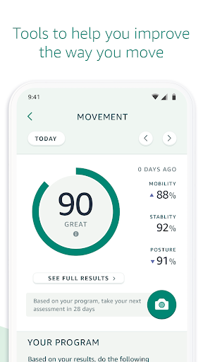• Halo uses your smartphone’s camera to accurately measure your mobility, stability, and posture, and then provides a custom set of corrective exercises to help you improve over time.