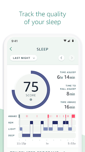 • Analyze your sleep patterns, like how long it takes you to fall asleep, how much you wake up at night, and how long you spend in each sleep stage.