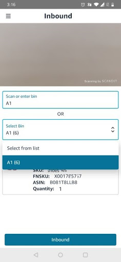 4. Scan or enter BIN and finish inbound - Scan or enter BIN location where you wish to store this inventory and press submit.