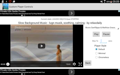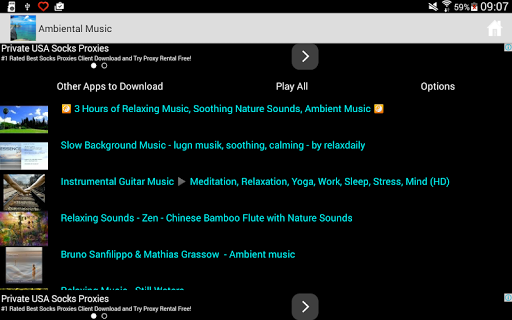If you want quality ambient music, this app will save you time. These are all videos from YouTube, however, personally picked and problem free. Although there is a good deal of high level Java programming going on behind the scene, you won't notice it. To enjoy the music, just select the track you want, or, with the Play All button, play all the tracks in a row. Excellent if you study!