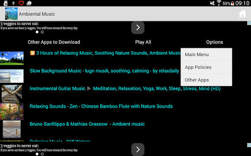 This is our choice of ambient music from YouTube. You can go to YouTube directly, that is true, but having it all in an app, within two or three taps is very convenient and beats entering naked YouTube links hands down. This app is for true ambient music lovers, not for technical buffs!