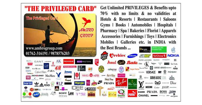 The Privileged Card proudly serves North India, Mumbai, Goa, Bangalore, Etc. A Privileged Like No Other- Discount Cards in India. Ambro Group Privileged Card is a personalized membership scheme that gives discounted entry into a range of Best Resorts, Hospitals, Cinemas, Saloons, Bakeries, Eating Joints, Malls & Recreation Services. The Privileged card helps people access Resorts & Services when price might otherwise be a barrier. The Privileged Cards Helps you to be easy on pocket when prices of the product are sky high & same point you get 50% to 75% Discount on the services you avail via Privileged card.