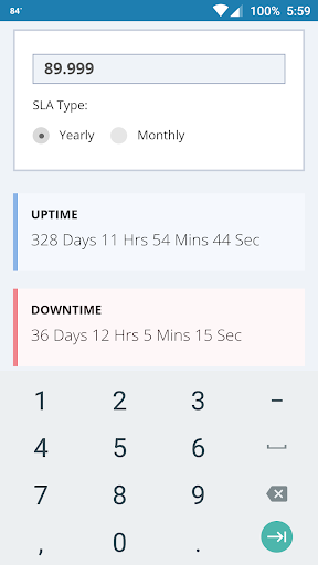 Uptimer is a calculator that provides an easy way to calculate the downtime allowance as a time period based on a provided uptime percentage.