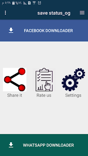 This application enables you to save videos from within publications and comments Facebook / can upload photos videos from your WhatsApp cases
