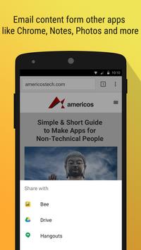 Apart from being fun and friendly, Bee is super easy to setup. Just install the app and add people from your contacts or enter email addresses not in your contacts. Later compose emails by simply tapping on contacts from the Bee app or from other apps.