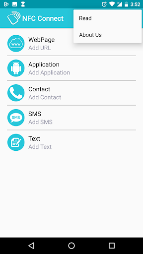 NFC Connect is an app which allows you to read, write and program tasks on your NFC tags and other RFID compatible chips.