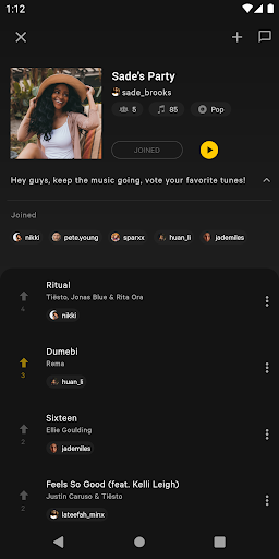 - Gain points and build your music reputation (shown on your profile) whenever another guest up-votes a song you added