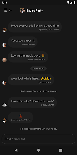 - Influence the music played by DJs and hosts performing around you when you join their Amplifi playlist
