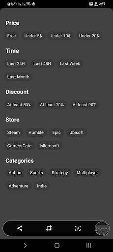 • Filter games deals by (time- store - discount percentage - genre and more ).
