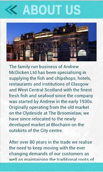 The family run business of Andrew McDicken Ltd has been specialising in supplying the fish and chip shops, hotels, restaurants and institutions of Glasgow and West Central Scotland with the finest fresh fish and seafood since the company was started by Andrew in the early 1930s. Our new app not only allows our trade customers to place orders, our new retail section allows you to order direct from the app, straight to your door! In the app you can also keep up to date with our latest offers along with great recipes that you can make with our products.