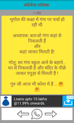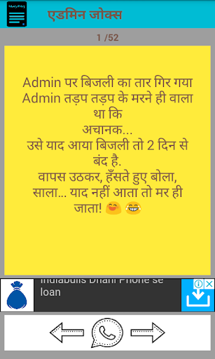 This app provides the different types of unlimited Hindi jokes 500 latest, All new funny Jokes in Hindi - Find Hindi Jokes, Funny Jokes in Hindi, Hindi Chutkule, Funny Hindi Jokes, Chutkule in Hindi.