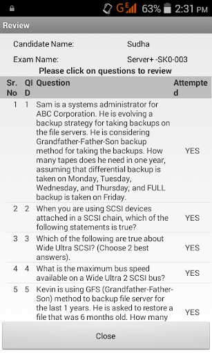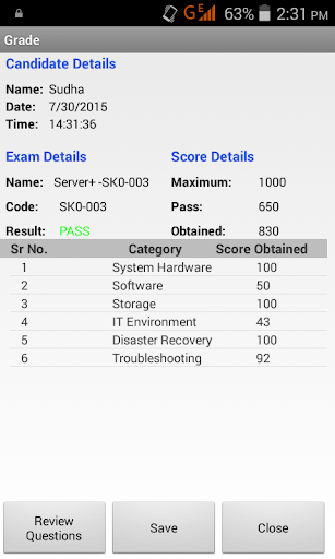 3. Review mode: Results can be saved at end of the exam and questions can be reviewed.
