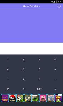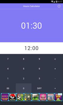 You can use this to get total difference time between two time card. In example, you can start by type your first time card, like 23:00, then click on (DIFF), type another time card, like 08:00. Click (=) after that to get total from those addition - on this case you will get 09:00.