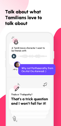 Setting Cultural Preferences: Anbe appreciates the Tamil cultural nuances and choices that define Tamilian ways of living. We have the preference features on the app that is tailor-made to make sure you find what you're looking for in a person. And to help you in breaking the ice, we host a gamut of Tamil pop culture references that you can use in your profile answers — from food to TV shows and cinema.