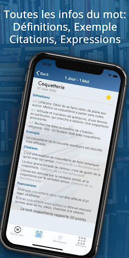 Apprenez un nouveau mot tous les jours, sans exception. Améliorez votre culture de la langue française avec cette application gratuite !