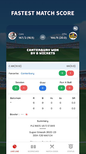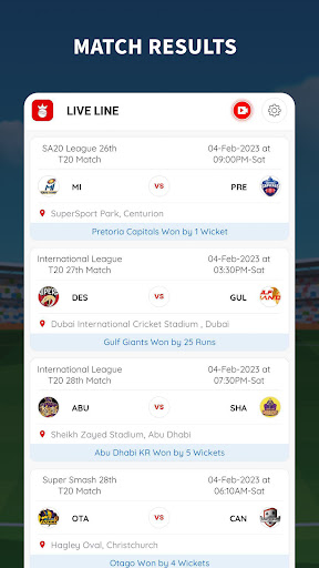 Download the app and enjoy latest cricket live line app to get score quicker!