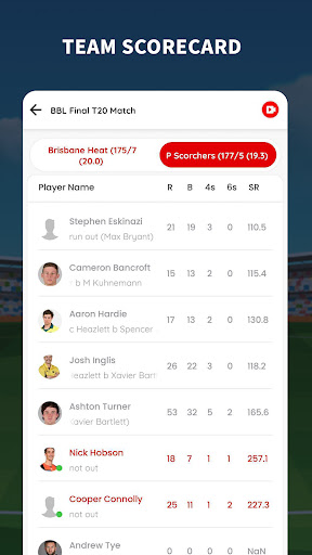 Instant live line score updates from your favourite cricket leagues that we covers like, Indian Premier League (IPL), Big Bash League (BBL), Pakistan Super League (PSL), Caribbean Premier League (CPL), Bangladesh Premier League(BPL), Abu Dhabi T10 League, T20 Blast, County Cricket, Super 50 Cup, Women’s Big Bash League, The Hundred Women’s Competition etc.