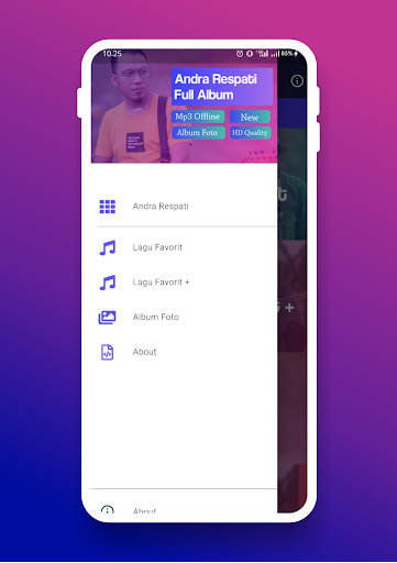 dalam menu tentang. Kandungannya adalah penjelasan mengenai penggunaan lagu Andra Respati MP3 offline yang pecah dan jelas diberitahu.