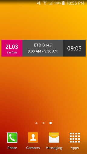Next Class Widget is an elegant 4x1 widget that displays relevant information about your next class.