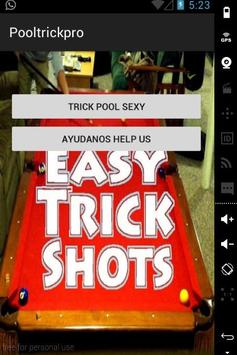 A trick shot (also Trickshot or trick-shot) is a shot played on a pool table (most often a pool table, pool tables but are also used), it seems unlikely or impossible or requires significant skill. Trick shots often involve balls organized in ways that are impossible or unlikely to appear in normal play, as the balls are in a straight line, or the use of accessories such as additional signals or triangle that are not allowed in the table during a game. As organized cue sports discipline, trick shot competition is known as the artistic pool.