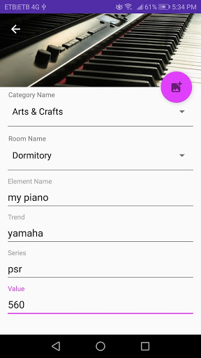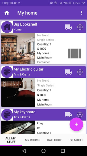 Then start to add your stuff, app will requere a category, a room and a name for the curren Item although you can fill in the other details for a better experience, add a photo of your item could be very helpfull.