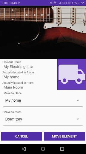 As your home inventory grows you may need to relocate your stuff in other rooms or places, then you can use the move button on each element to locate them in a very easy way, items that work as containers and have items asociated inside of them are moved all togheter with one click.