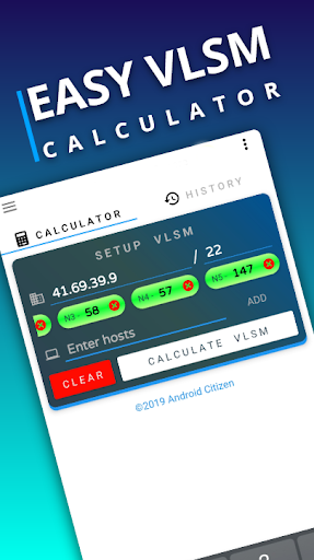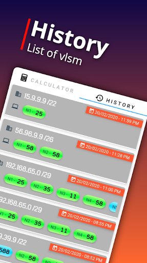 📱Calculate VLSM (Variable Length Subnet Mask) that you need as a Network Engineer or Student. Throughout this app, you will get some useful information about your Networks according to required Hosts.