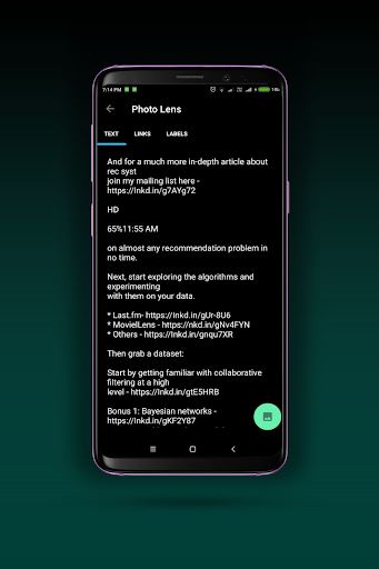 Want to extract text, detect faces, get labels and links out of your images or shots. Then Photo Lens is for you. Photo Lens is made with Machine Learning Algorithms and is capable enough of extracting numerous features out of your pictures. Photo Lens/ Smart Gallery features a simple and intuitive interface, that doesn't get in the way. This App is designed around speed and performance.