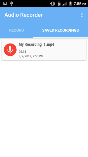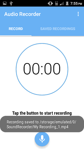 (This sound recorder creates a folder on you SD card named "SoundRecorder." You can go to this folder to retrieve your saved recordings or you can pull up directly from the app.)