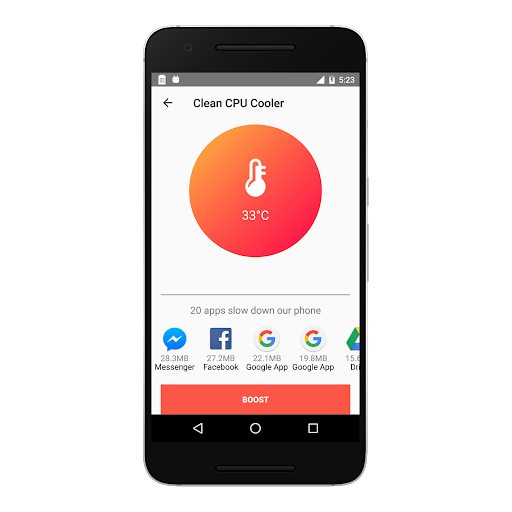 CPU Cooler is a temperature monitoring and controlling app that reduce your CPU usage and cool down your phone. Cooler overcomes the common heating problem of android phones, lower down phone CPU temperature and cooling device your overheating phone.