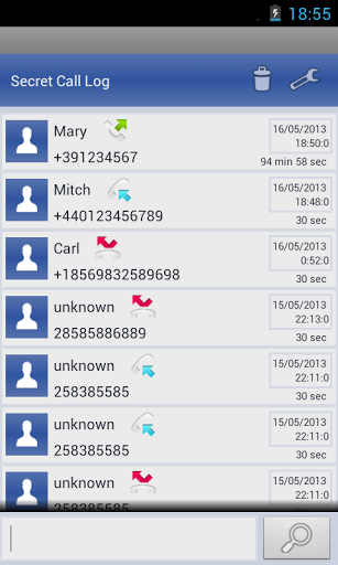 From Today all your calls are safe ?maybe yes ! All outcoming and Incoming calls of your mobile phone will be stored in a secret calls list hidden in your phone. No icon or launcher icon will appear after the installation of the app. So, 1 For start the application :make a fake call to telephone number: 00002 Insert the pin code 00003 End4 Reboot the mobile phone at end of installation (very important)5 (Optional): change the pin code.Now you can keep under control the call log of your mobile phone! You don'thaveworry that someone make or receive phone calls using your mobile phone and after, tampers the call log. This app silently proceed to record all incoming, missed andoutgoing calls in its secret registry, accessible only to you ! So ....Find Who don't tell the truth about the calls that makes with you phone !This application is completely hidden from prying eyes and can only be activated by dialing a special access number and a PIN authentication.experimental tag: hide yourself eyes invisible at world invisible girlfriend boyfriend parents store record, spy heart, secrets secret projectkey account,search communication liberty,Import contacts from Phone Book,delete calls from phonebook, cancel calls from contacts list,secret menu,secret configuration,free in trial version , backup calls log call.Soon new interface with Facebook .