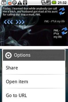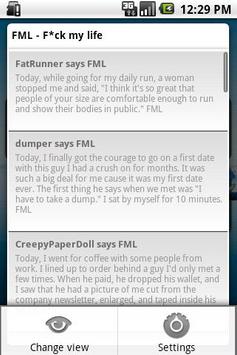 Read the hilarious F*ck My Life stories from your home screen: user-submitted stories of unfortunate happenings that ruined your day. Similar to tfln and mlia