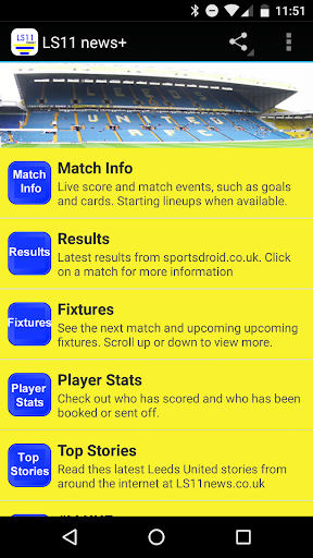 LS11 is the postcode of Leeds United Association Football Club's ground, Elland Road. This application has been created by and for fans of the club. It contains links to LUFC news, fixtures, results, match stats and social media feeds.